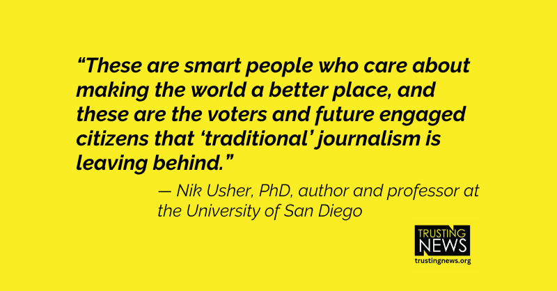 These are smart people who care about making the world a better place, and these are the voters and future engaged citizens that “traditional” journalism is leaving behind.