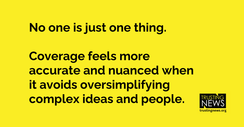 We, and our partner journalists, hear over and over that one reason people don’t trust the news is that they think journalists oversimplify and stereotype them and people like them. We hear it from people who lean right politically. We hear it from communities of color. We hear it from rural communities.