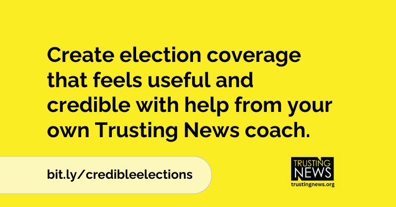 For journalists and newsrooms who could use support with a specific part of your election coverage, Trusting News is offering quick one-on-one coaching for journalists and newsrooms.