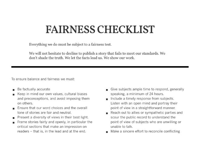 San Diego Union Tribune created a reporter fairness checklist to ensure they’re being fair, consistent and transparent in their reporting.