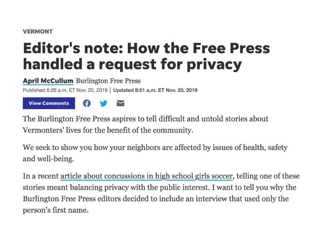 The Burlington Free Press explained why the newsroom decided to use an unnamed source in a big investigation.