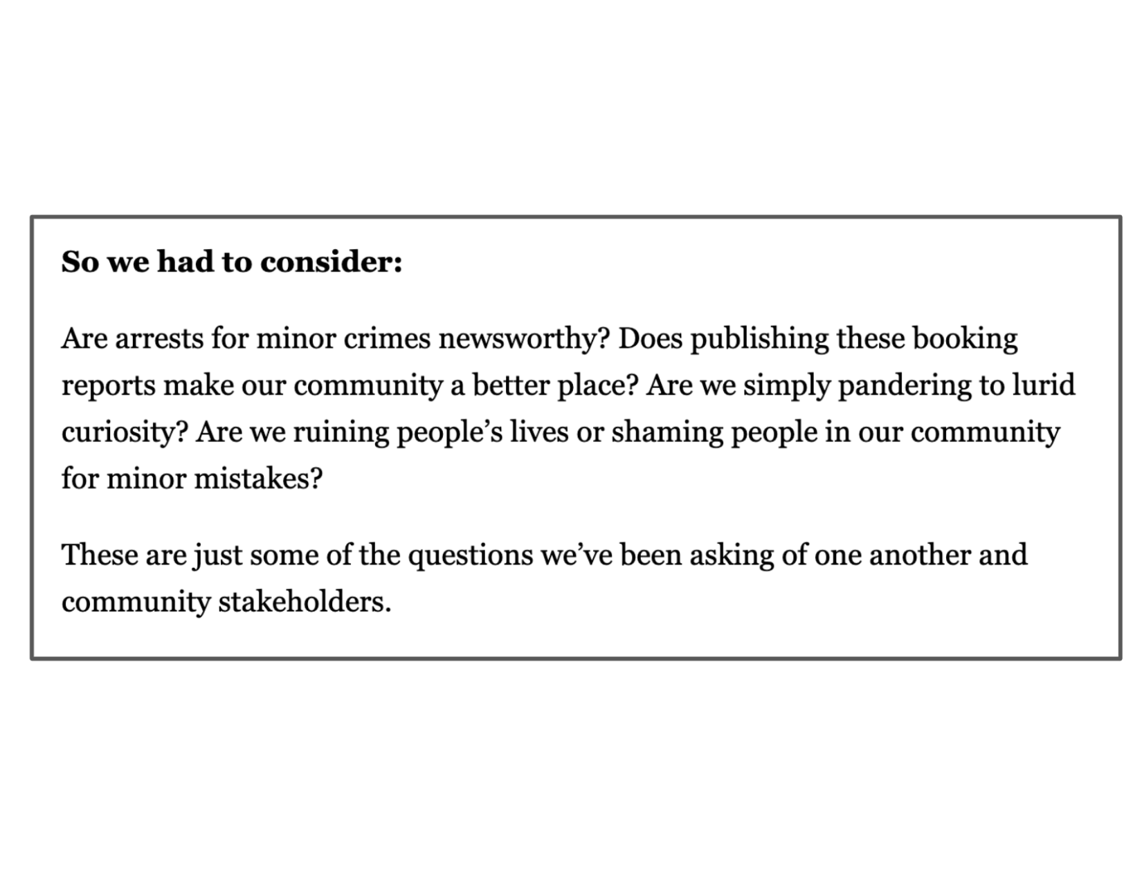 WTXL decided to stop publishing mugshots in the majority of its crime stories. They published a column explaining that the decision was out of a commitment to “tell stories that go beyond the irrelevant and isolated stories on the crime beat.”