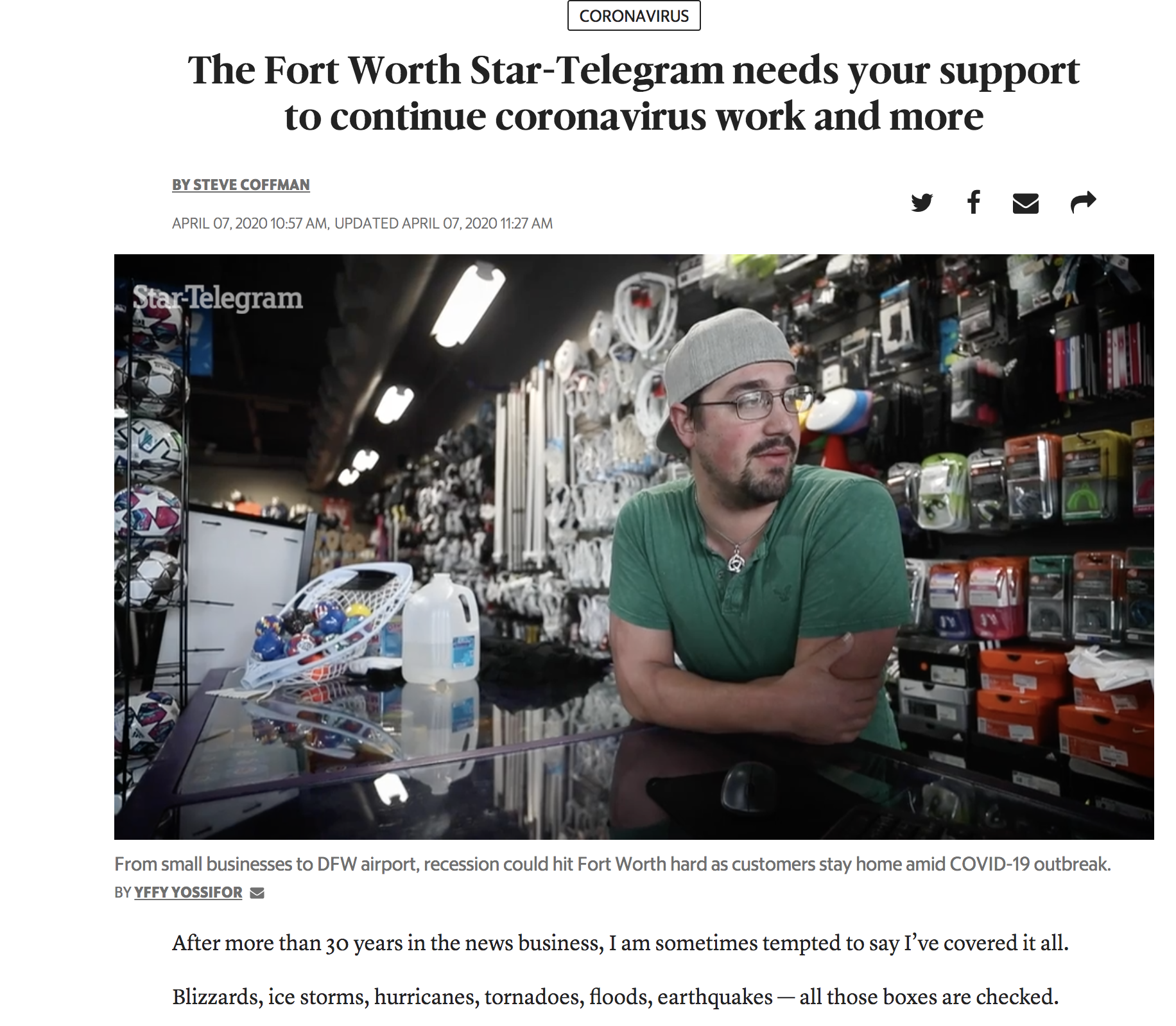 After intially lifting the paywall on all coronavirus-related stories, the Fort Worth Star-Telegram decided that as the pandemic went on, the newsroom would start putting some additional stories behind the paywall. Editor Steve Coffman wrote a column explaining the change in clear, straightforward language that told readers about the paper’s funding model while also expressing the paper’s need for support: “This is a matter of survival for the Star-Telegram and other local newspapers,” Coffman wrote. “We have taken a significant revenue hit due to the coronavirus on the advertising side, which is reflective of the struggles local businesses face.”