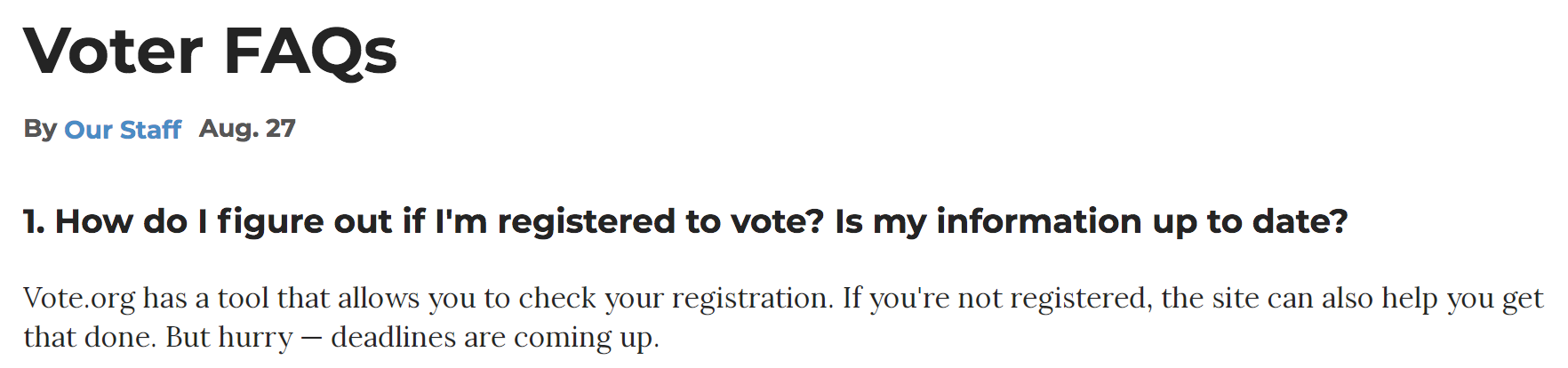 In order to make voting information easily accessible for readers, the Fulcrum created a voter FAQ that had information about how to make sure voter registration is up-to-date, how to find polling places and what voting rights the public has.