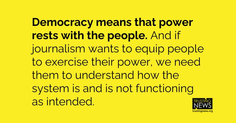 At Trusting News, we learn how people decide what news to trust and turn that knowledge into actionable strategies for journalists. We train and empower journalists to take responsibility for demonstrating credibility and actively earning trust through transparency and engagement. Learn more about our work, vision and team. Subscribe to our Trust Tips newsletter. Follow us on BlueSky and LinkedIn.