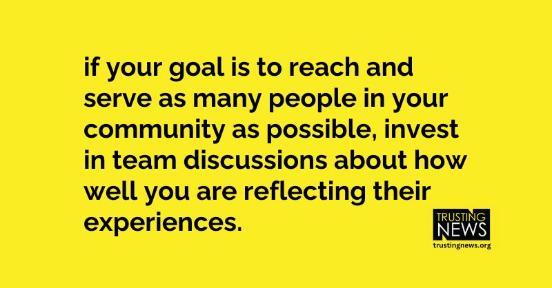 But if your goal is to reach and serve as many people in your community as possible, it’s worth investing in discussions about how well you are reflecting their experiences.