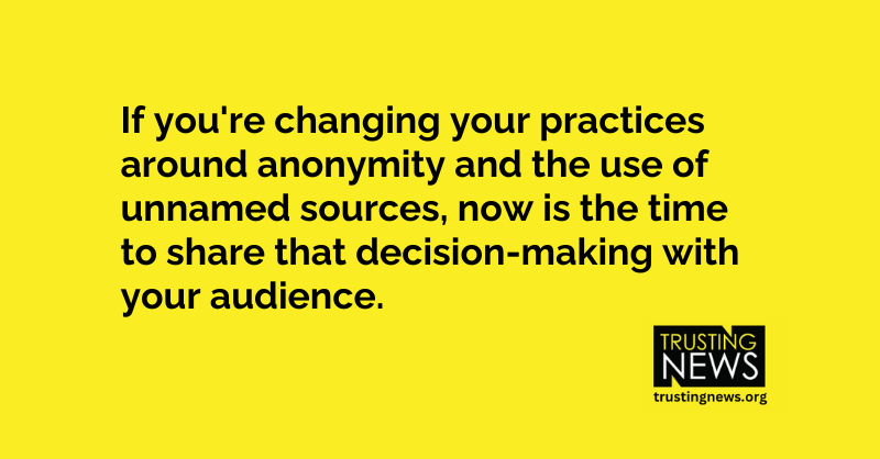If you’re changing your practices around anonymity and the use of unnamed sources, now is the time to share that decision-making with your audience.