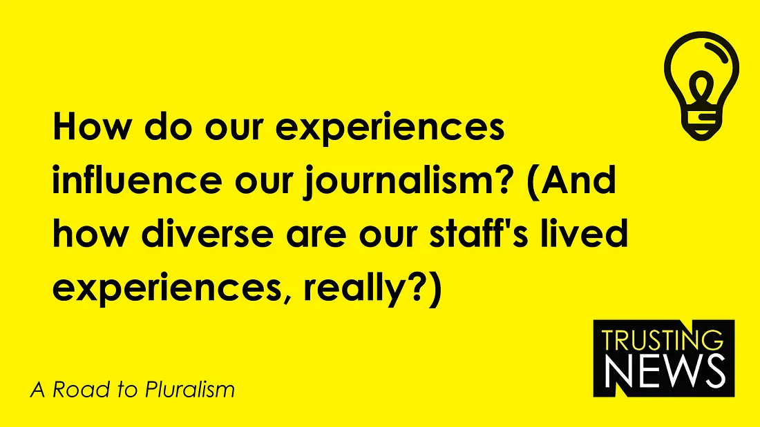 What if a job candidate were a veteran, or had a family with a law enforcement background? If someone’s family ran a small business, or included a lot of teachers, or had immigrated recently to the US, or worked in trucking, or was involved in environmental activism, or included people who were incarcerated — all of these factors might or might not contribute significantly to how the person sees the world now and how they would approach their journalism. But could our interview processes more thoughtfully include the opportunity for them to come up?
