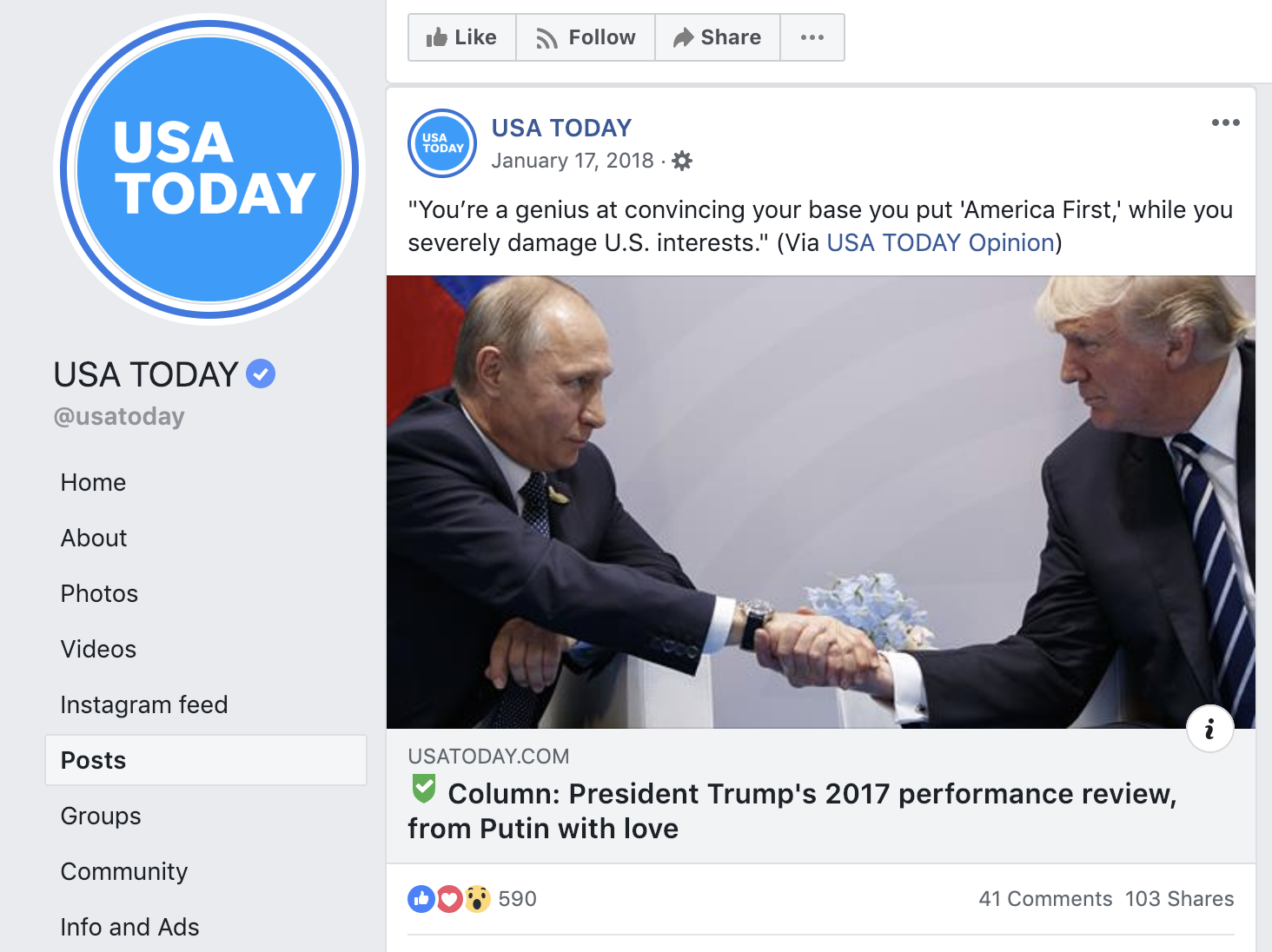 USA TODAY heard from readers on Facebook that they were not always sure when they were reading news and when they were reading opinion. Editors tried manually adding the word Column to some headlines for Facebook, and they perceived a lower level of confusion as a result. It seemed easier for readers to acknowledge that they were consuming a piece designed to have a certain perspective.