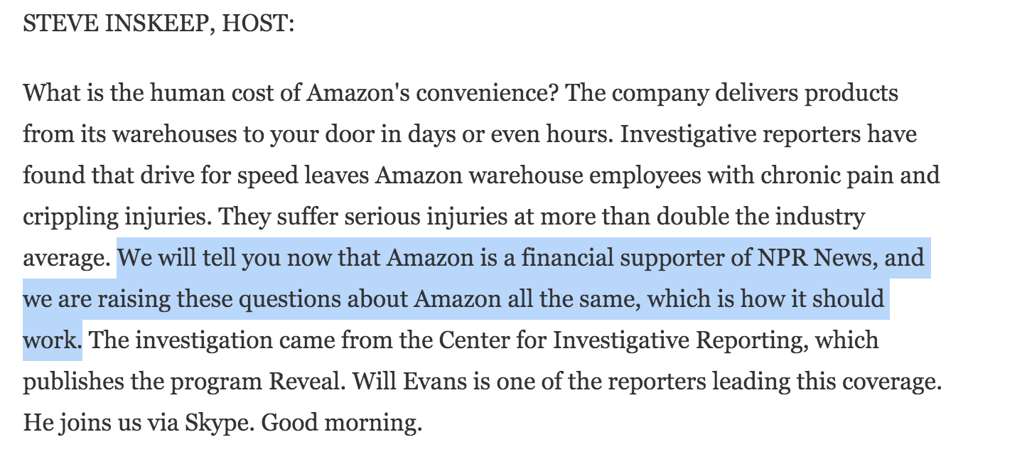 NPR discloses financial support