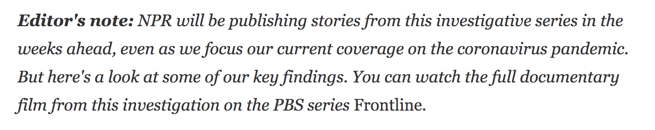 NPR explains non-pandemic related investigation