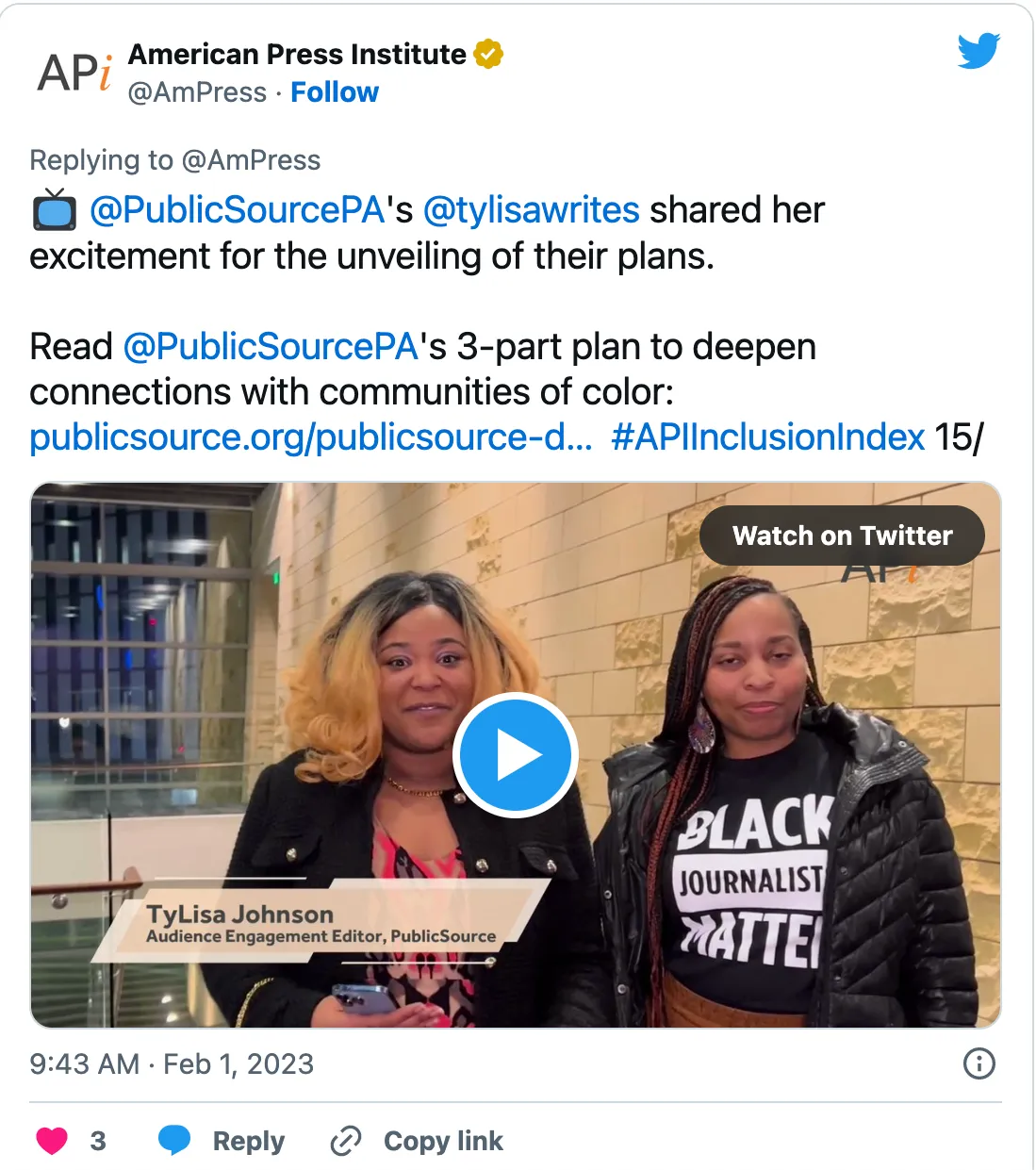 PublicSource wrote about its work with API in a story on its website. They began the post by recognizing that it and other news outlets have not always done a good job covering communities of color. They also wrote about how this work is challenging but they are committed to it nonetheless.