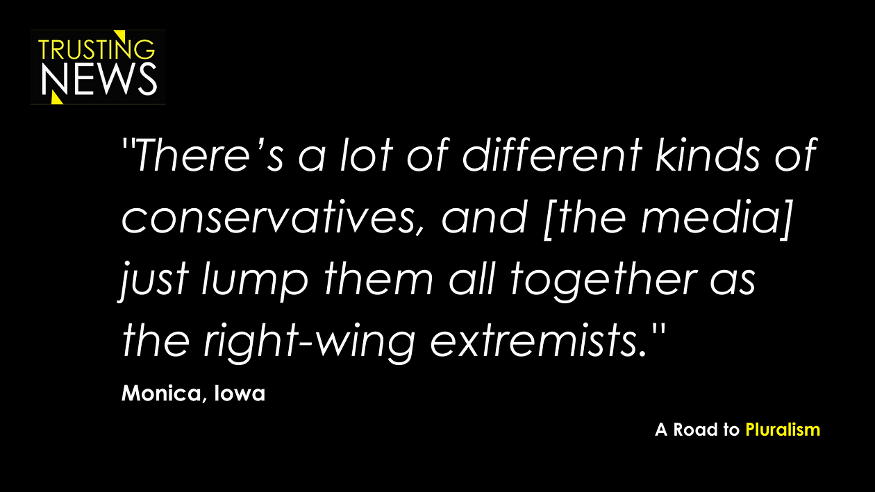 Here’s a collection of observations from our newsroom partners and other journalists who’ve gotten in touch with us on the topic of generalizations and polarization in news coverage. Some are from our recent interviews with right-leaning news consumers, and some are from our work more generally.