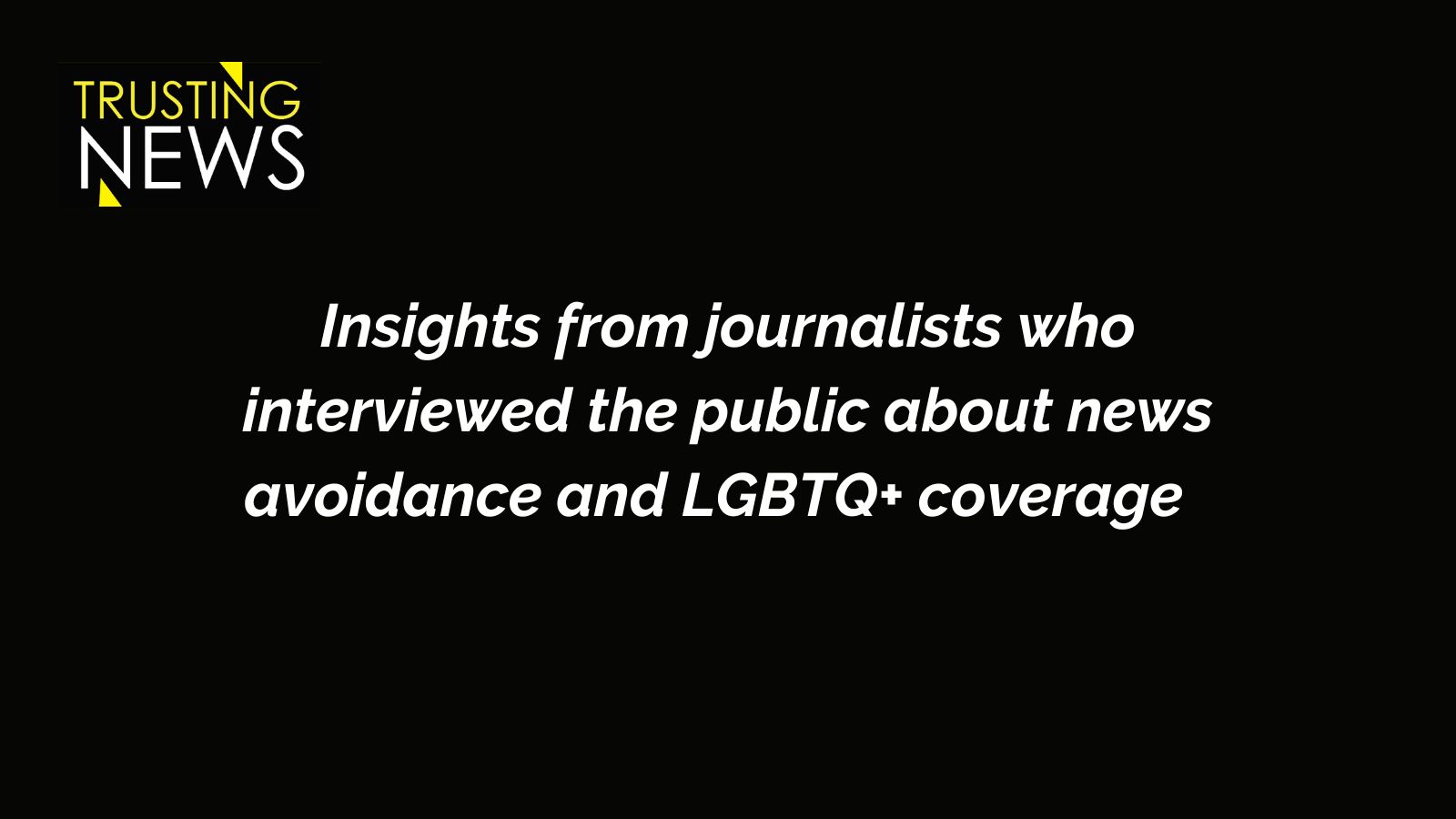 The goal wasn’t to study LGBTQ+ audiences alone, but to understand how LGBTQ+ issues intersect with patterns of avoidance, harm, and mistrust. What emerged were complex reflections, not just on the content of coverage, but on its tone, repetition, sourcing, emotional impact and representational gaps.