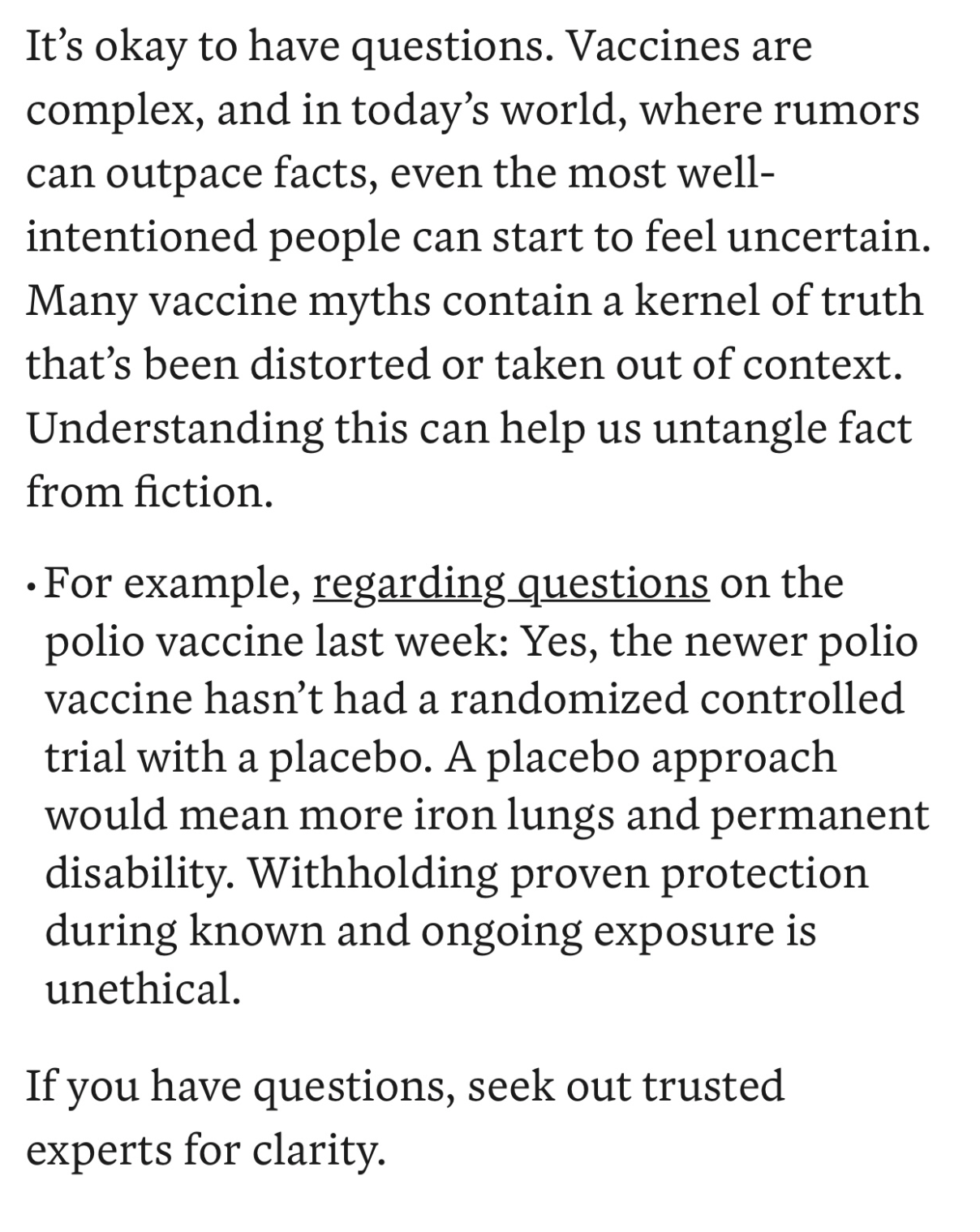 Your Local Epidemiologist does a good job of this in this section of a newsletter focused on vaccine skepticism. The author, Dr. Katelyn Jetelina, explains the validity of questioning.