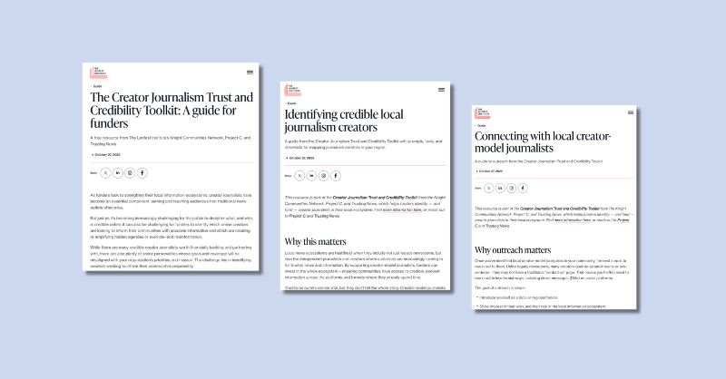 The Lenfest Institute for Journalism, Trusting News and Project C and are excited to launch a toolkit aimed at helping funders identify and support credible creator journalists in their local ecosystems.