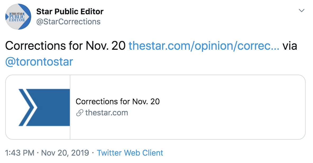 Toronto Star tweets out corrections