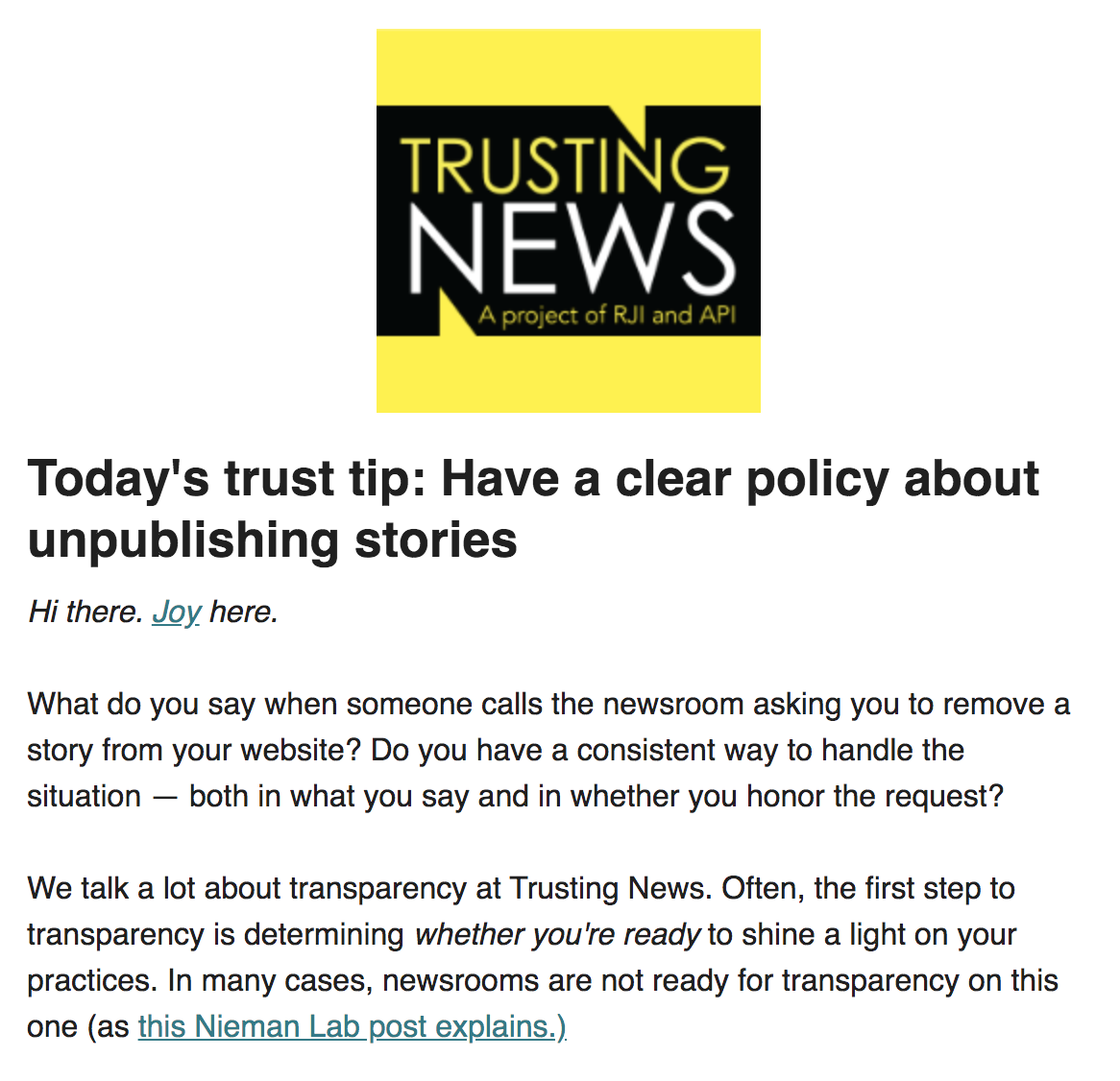 Trust Tip 41: Have a clear policy about unpublishing stories