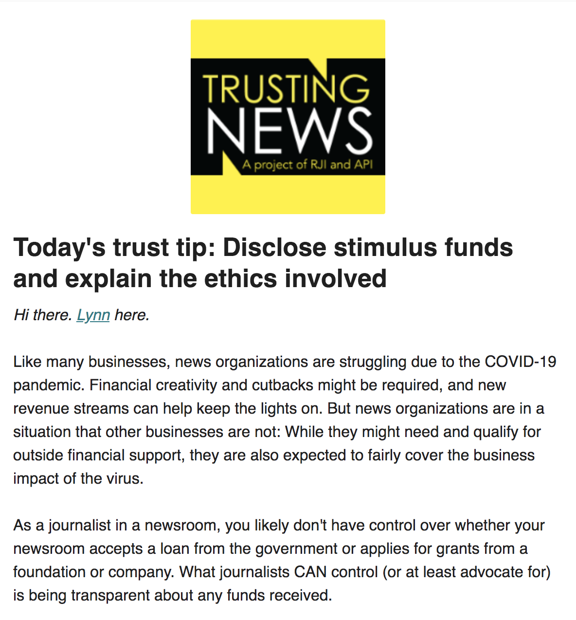 Trust Tip 64: Disclose stimulus funds and explain the ethics involved