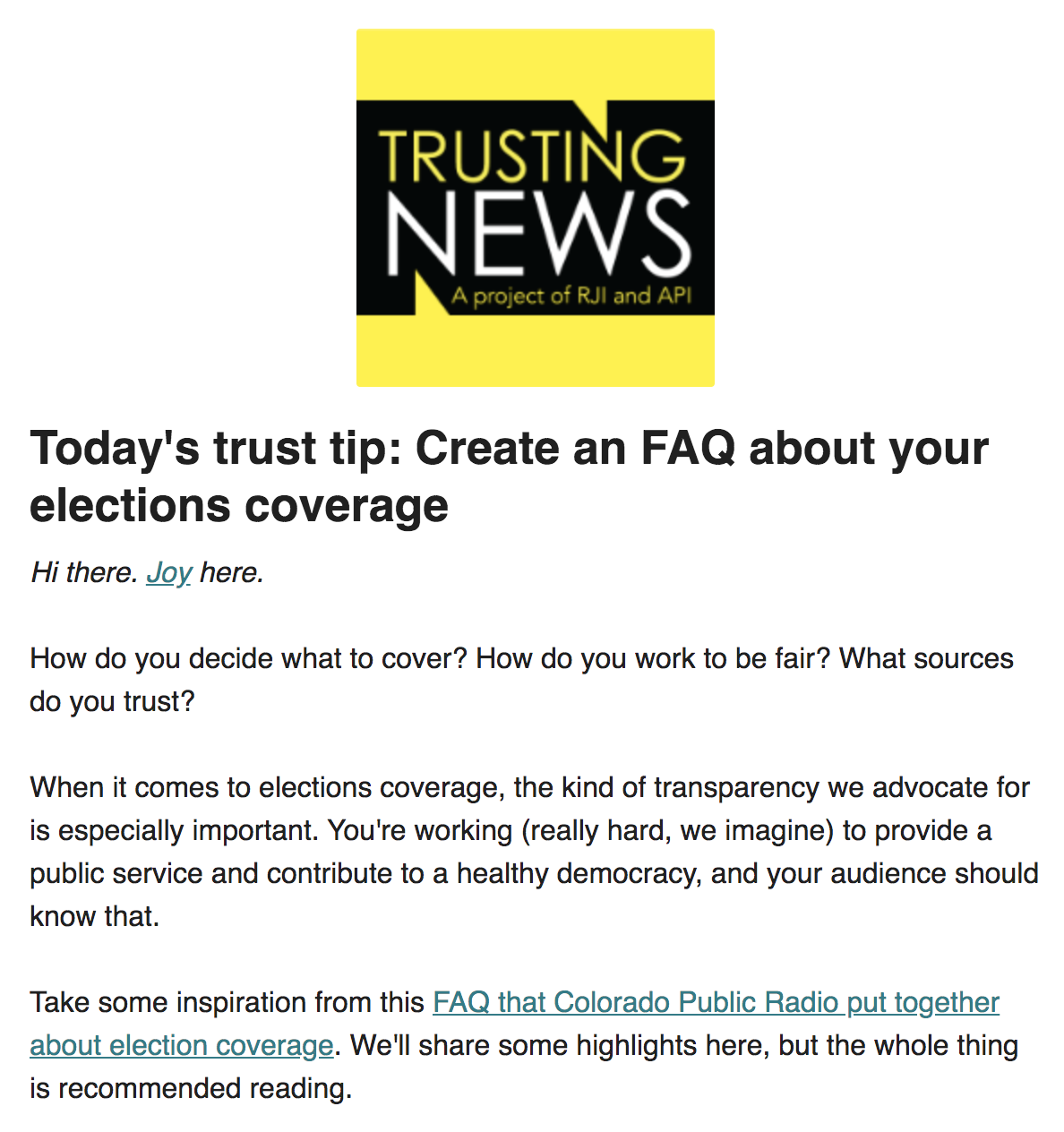 Trust Tip #83: Create an FAQ about your elections coverage