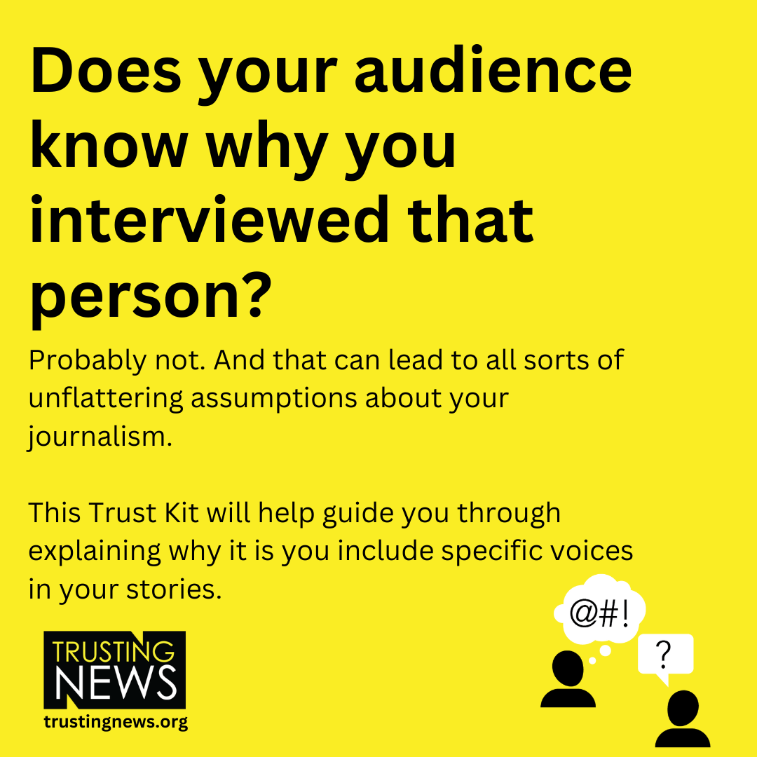 Journalists usually have reasons for interviewing and quoting specific sources, but those reasons are invisible unless we explain them.