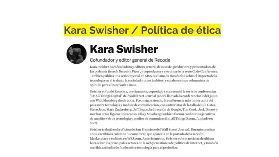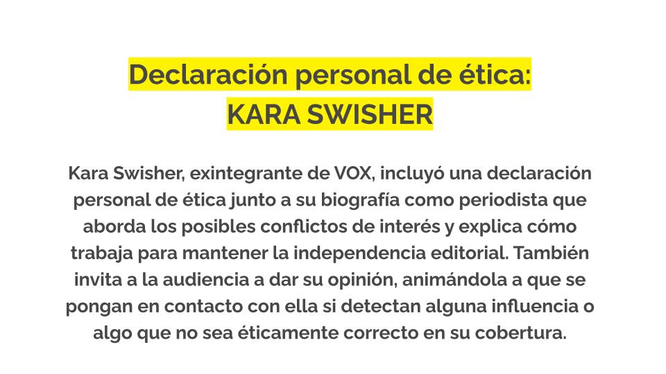 - Kara Swisher antigua colaboradora de VOX, explica su ética personal y cómo trata de evitar los conflictos de intereses.