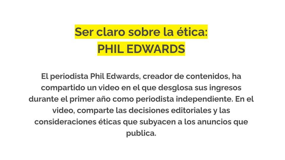 - El periodista Phillip Edwards, creador de contenidos deja en claro los principios éticos personales que guían las ofertas de publicidad y patrocinio que acepta.