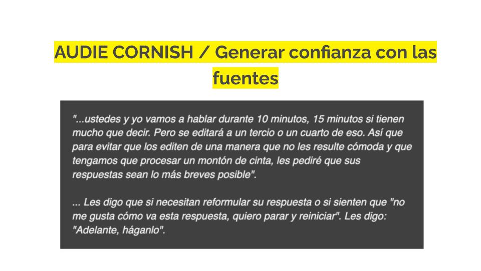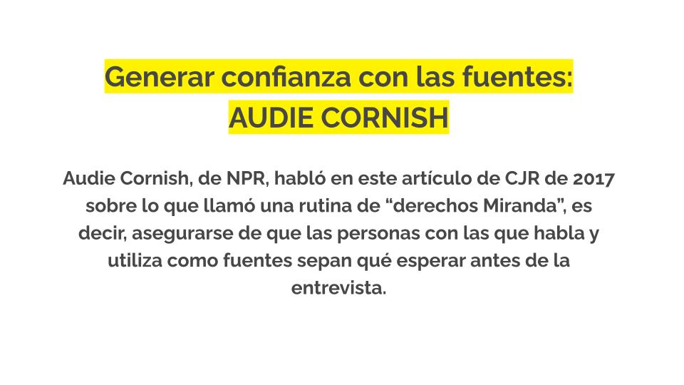 - Utilizar la transparencia para generar confianza con tus fuentes y tu audiencia.