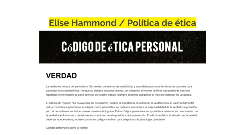 Si te resulta difícil redactar una política de ética desde cero, también puedes incluir un enlace al código de ética de la SPJ en tu sitio web o perfil en las redes sociales y explicar cómo aplicas sus principios en tu trabajo.