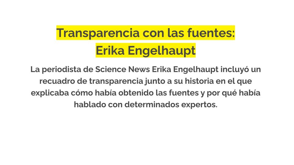 A modo de inspiración, estos son algunos ejemplos de cómo periodistas individuales incorporan transparencia en su trabajo. Para ver más ejemplos, consulta nuestra base de datos de ejemplos.