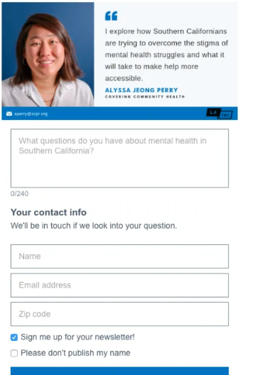 Here’s former KPCC reporter Alyssa Perry’s mission statement. It includes what she covers, what she’s hoping to achieve, and invites people to reach out.