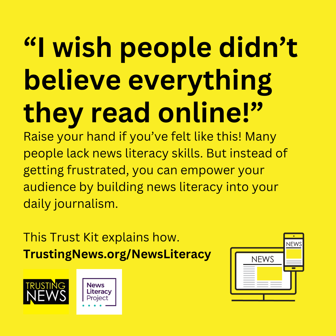 When we talk about news literacy, it goes beyond just helping educate the public. There are also lots of ways we as journalists can better explain how our journalism works and why it’s trustworthy. And the more people understand how you do your journalism, the more likely they are to trust your work and understand you have good motives.
