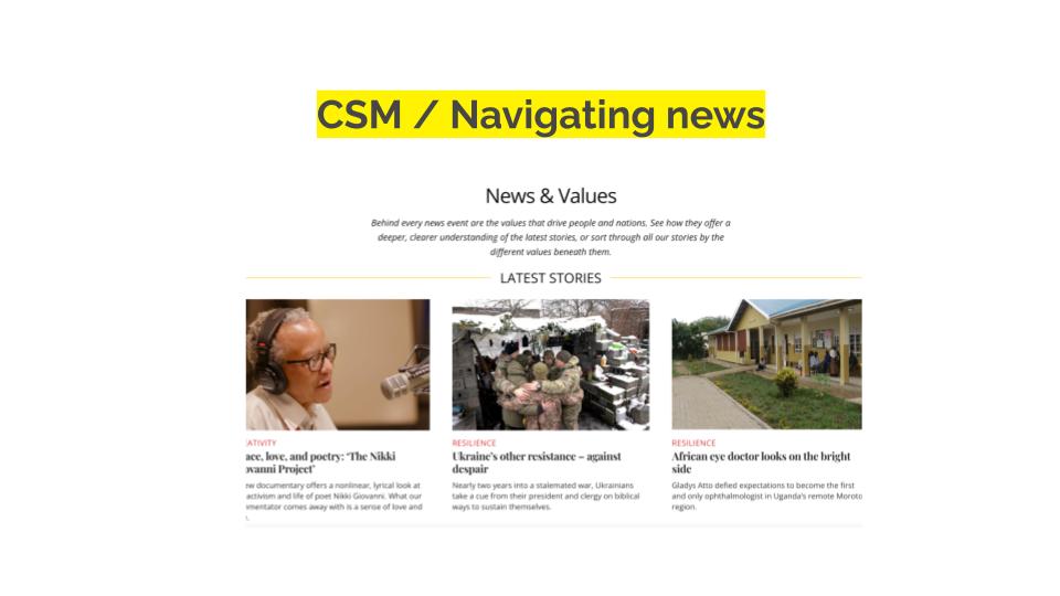 The Christian Science Monitor does something similar where they put value indicators besides the headlines of some of their stories, so readers can pick stories that align with the values most important to them. Your newsroom could do something similar by adding a line to newsletters, on air, or on social media that gets specific about each story’s impact.