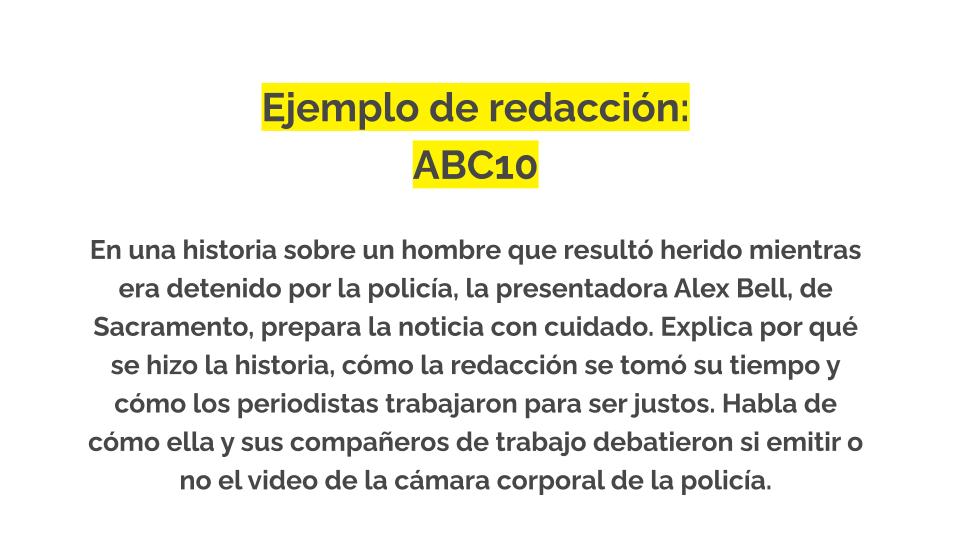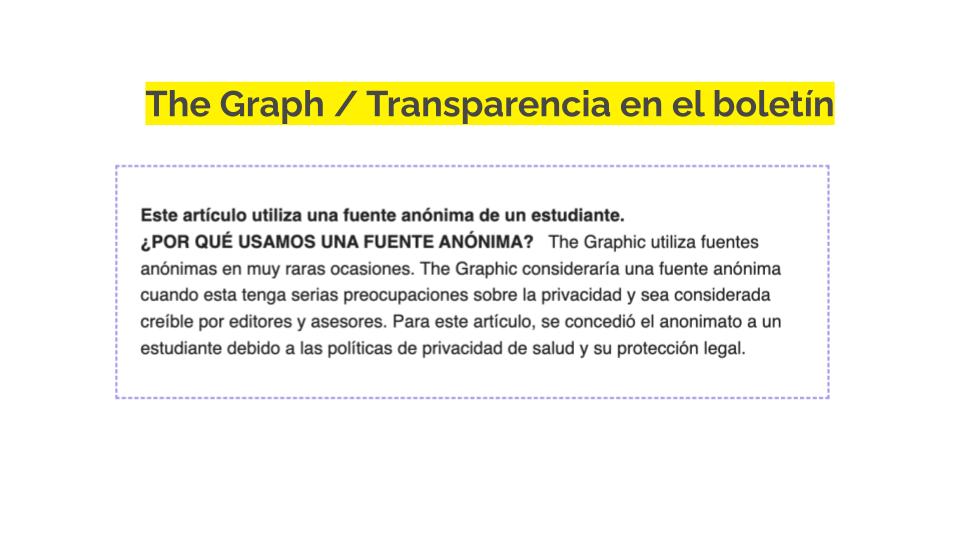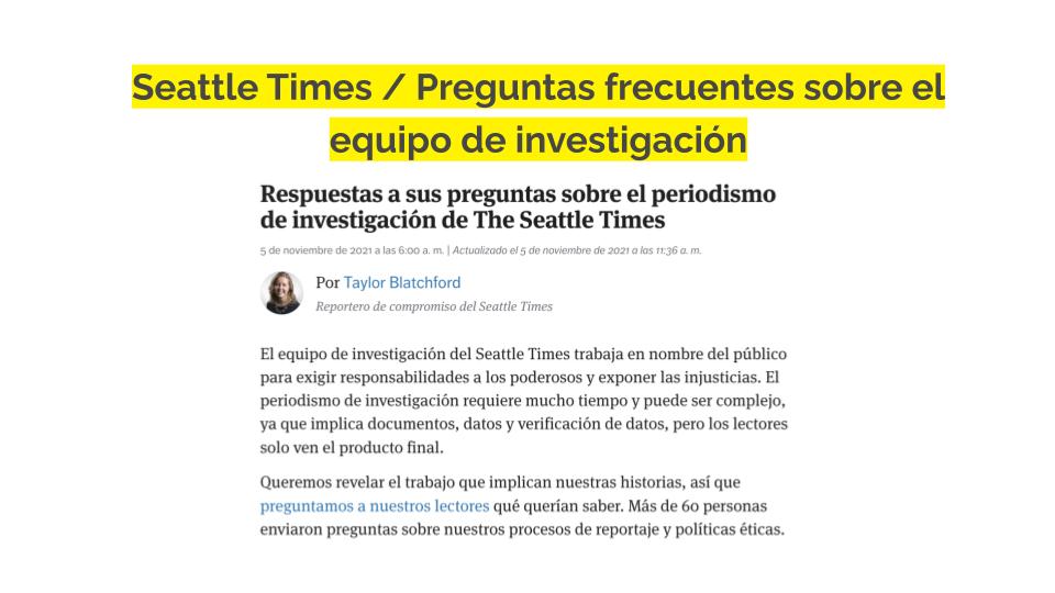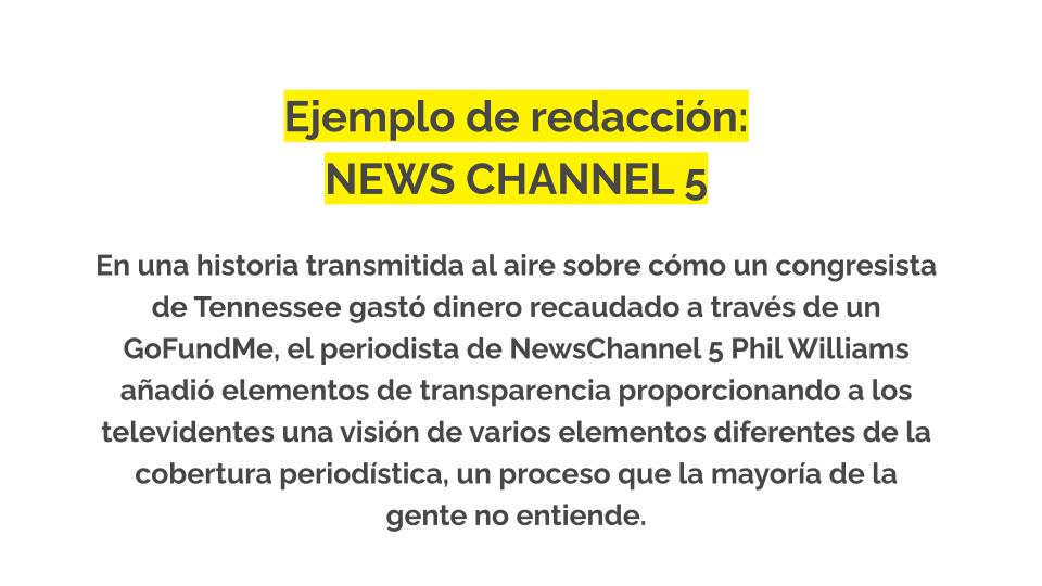 He aquí algunos ejemplos de cómo las redacciones incorporan transparencia en la cobertura diaria. Para ver más ejemplos de redacciones, consulta nuestra base de datos de ejemplos de redacciones.