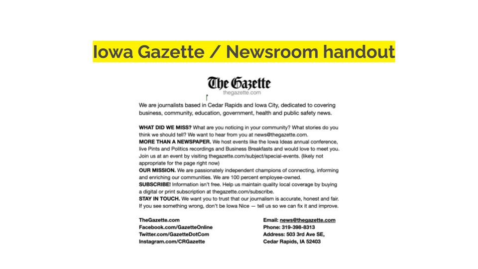 We have more tips for how to earn trust one-on-one with people in your community when you meet them in person, including some examples of how you might respond to common criticisms of journalism in this Medium post.