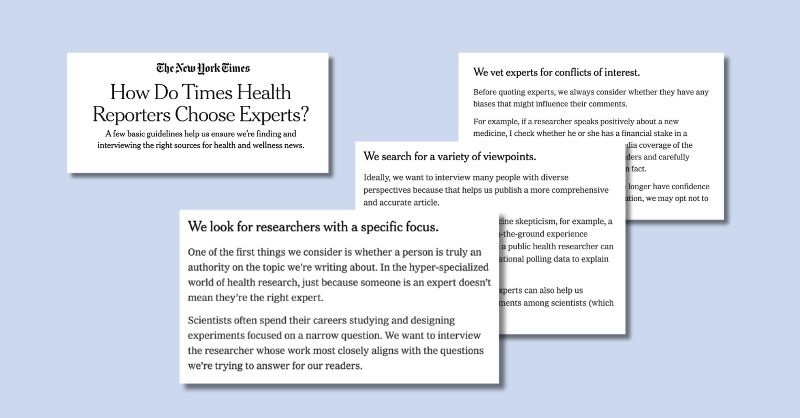 Reporter Teddy Rosenbluth recently wrote an explainer about how the Times’ health reporters select expert sources for their stories.